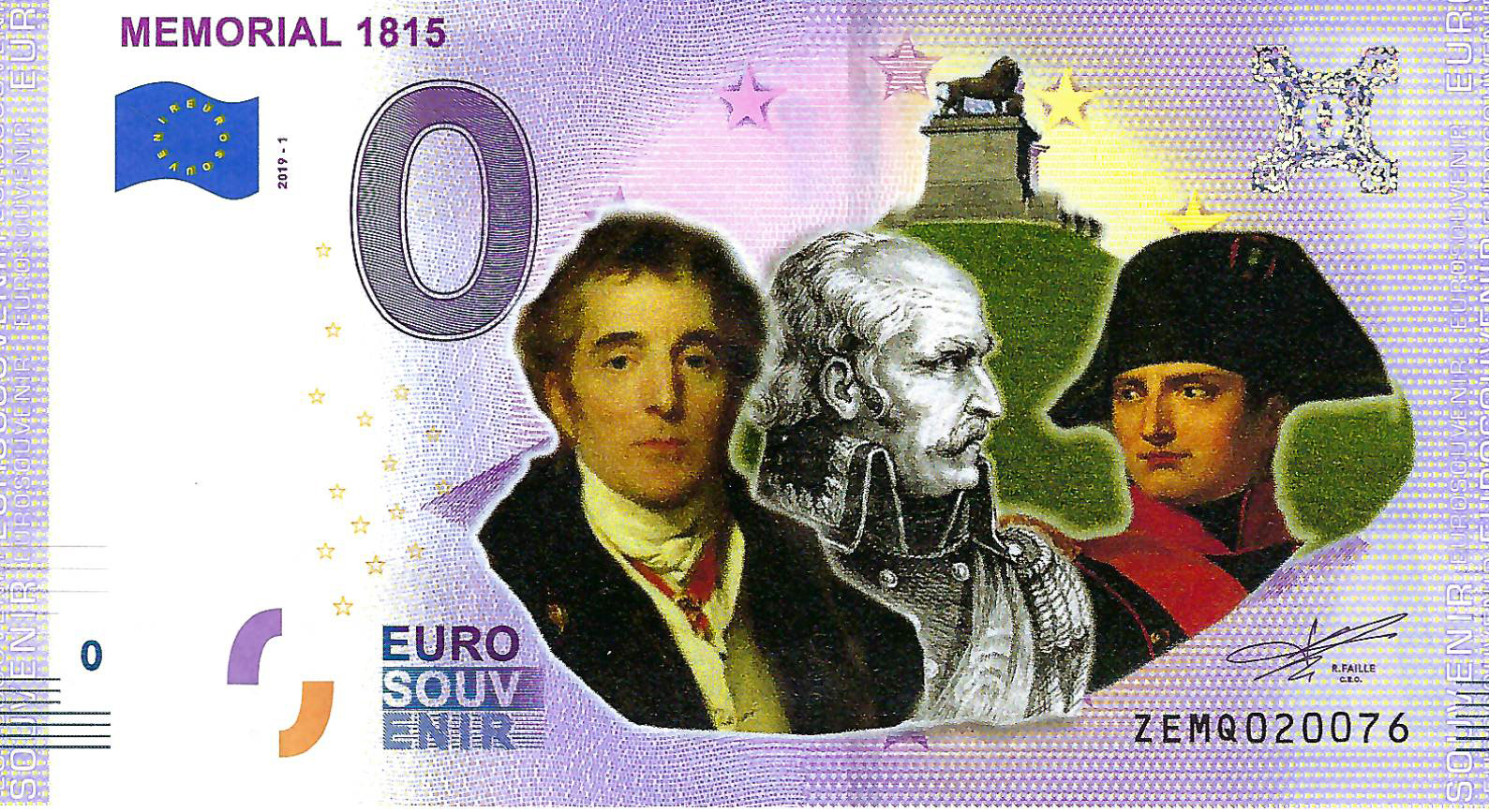 0 Euro biljet België 2019 - Memorial 1815 Waterloo KLEUR