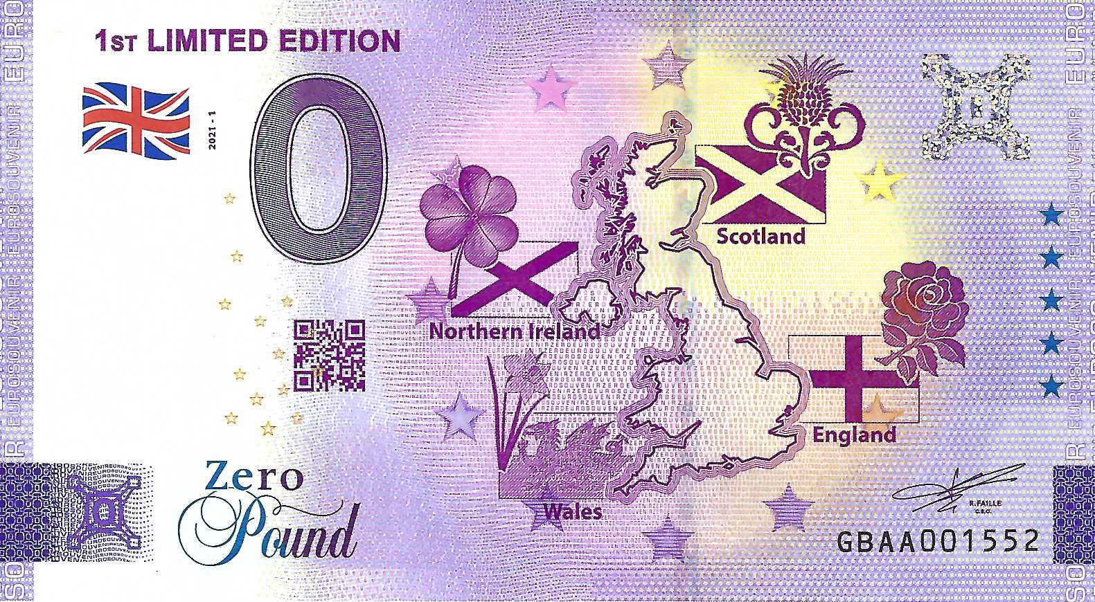 0 Pound biljet Engeland 2021 - Zero Pound