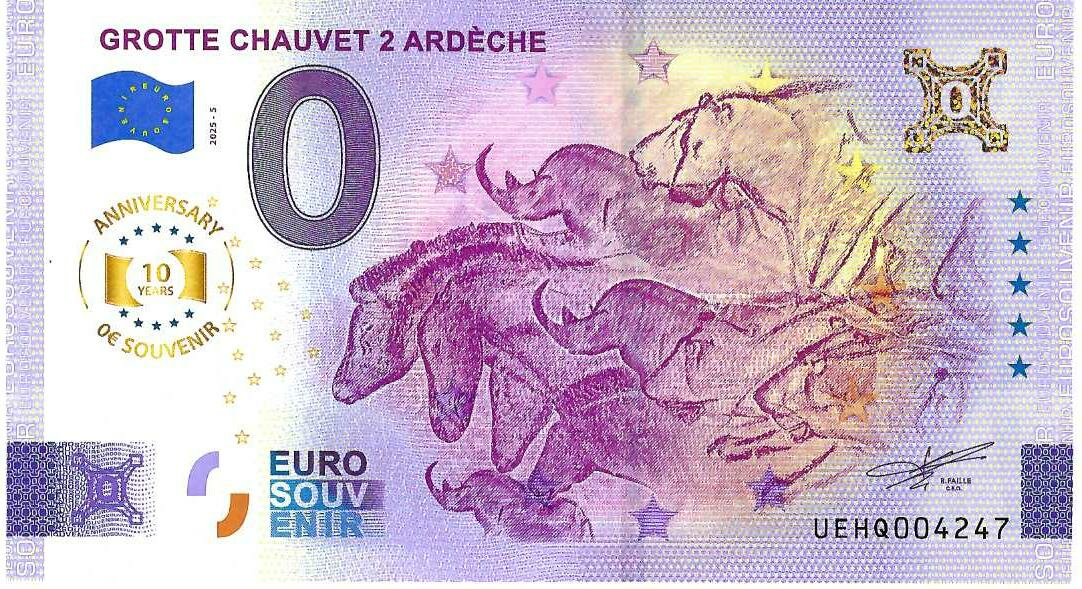 0 Euro biljet Frankrijk 2025 - Grotte Chauvet 2 Ardèche ANNIVERSARY