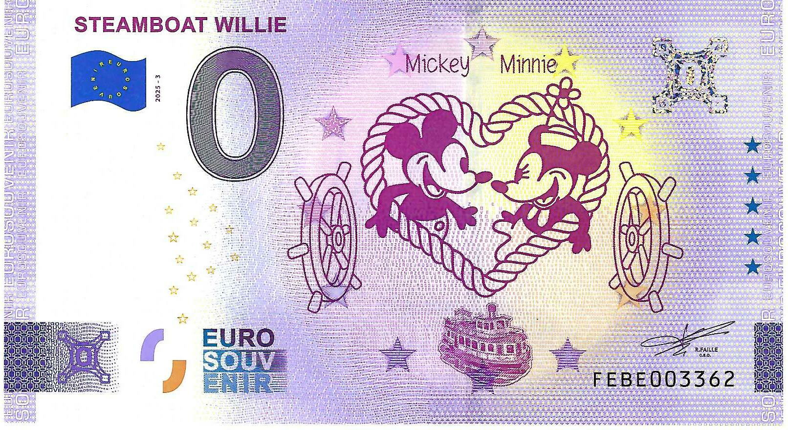 0 Euro biljet Malta 2025 - Steamboat Willie