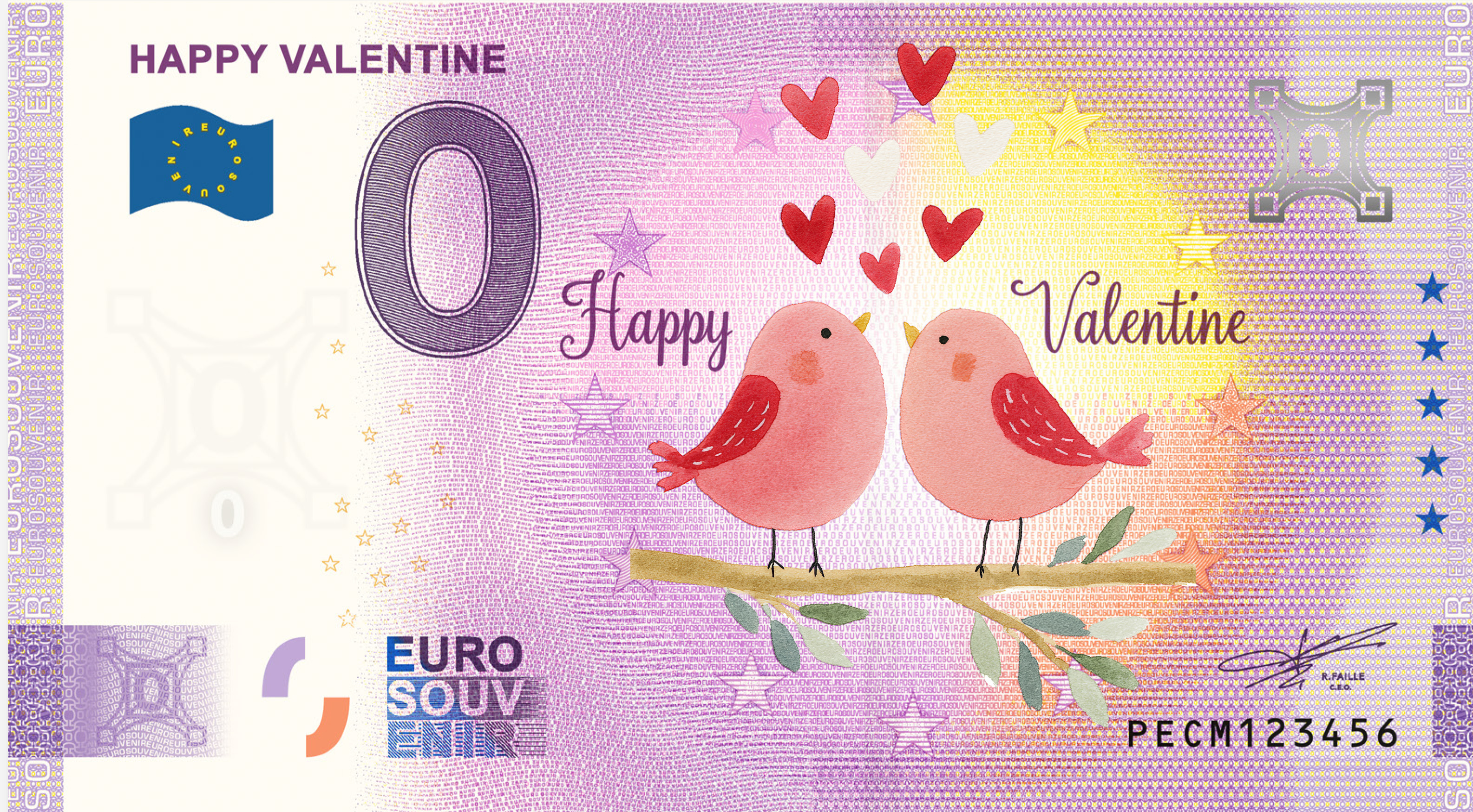 0 Euro biljet Nederland 2026 - Happy Valentine KLEUR
