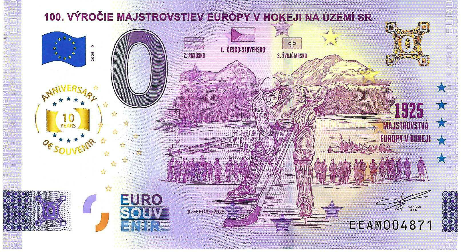 0 Euro biljet Slowakije 2025 - 100. Výročie Majstrovskiev Európy V Hokeji Na Území Sr ANNIVERSARY