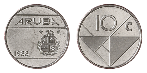 Aruba 10 cent 1986/2019 serie incl. 1997 gladde rand en 2016 a en b